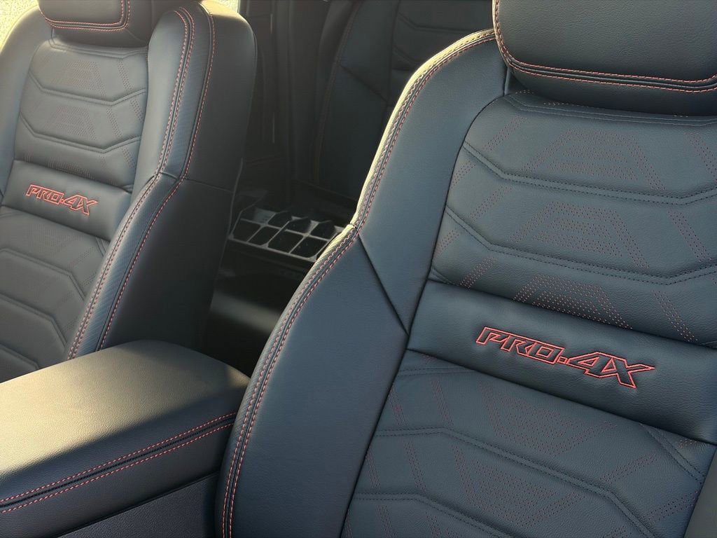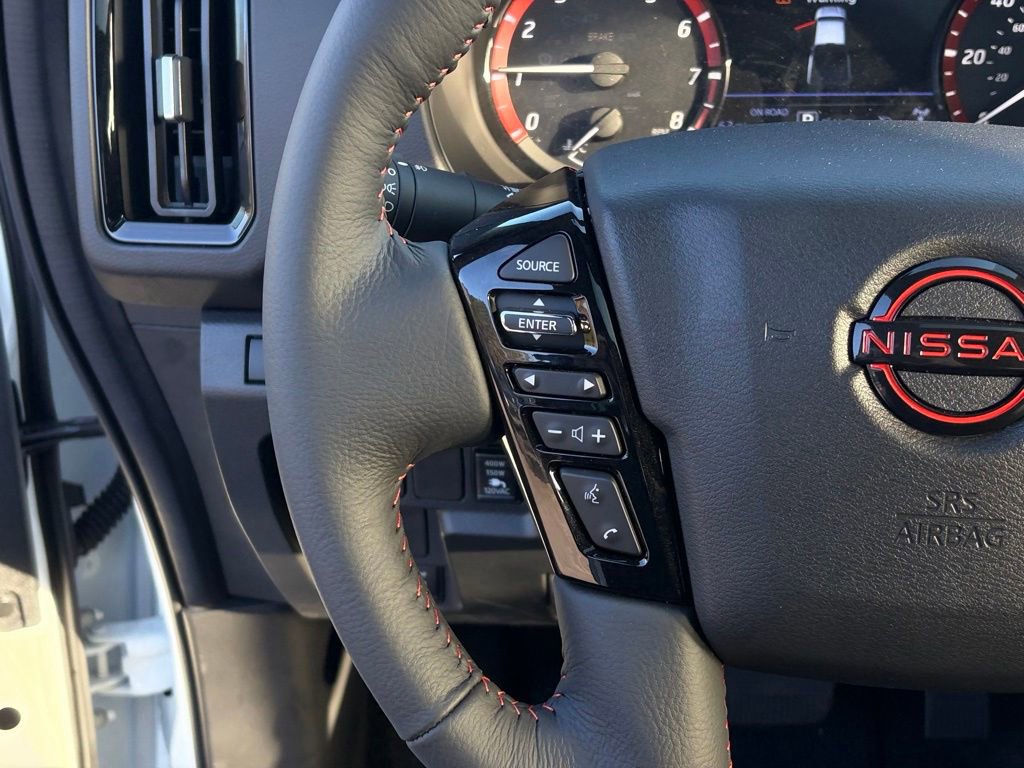 [P01] PRO PREMIUM PACKAGE -inc: Auto-Dimming Mirror, Nissan Door-to-Door Navigation, Traffic Sign Recognition (TSR), Fender Premium Audio System w/10 Speakers, dual subwoofer, Partial Under-Seat Storage Delete, HomeLink UGDO, Auto-Tilt & Slide Sunroof w/Manual Shade, [K04] PRO-4X CONVENIENCE PACKAGE -inc: Bed Under-Rail Lighting, Remote Engine Starter, 120V Power Outlet in Bed, Heated Front Seats, Intelligent Around View Monitor (I-AVM), Moving Object Detection (MOD) and enhanced off-road mode, Utili-Track System, 2 adjustable tie-down cleats, Spray-In Bedliner, Trailer Hitch w/Wiring Harness, Heated Steering Wheel, Wireless Charging for Personal Devices, Heated Outside Mirrors, 120V Power Outlet in Rear Center Console , [F92] ELECTRONIC TAILGATE LOCK, [B08] MUD FLAPS, Wireless Phone Connectivity, Wheels: 17" Off-Road Alloy, Wheels w/Locks, Variable Intermittent Wipers, Trip Computer, Transmission: 9-Speed Automatic w/Overdrive -inc: drive modes and hill descent control.