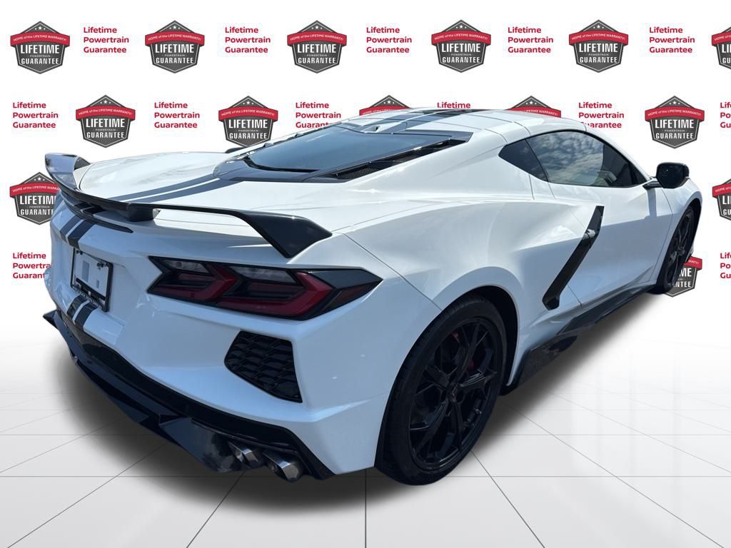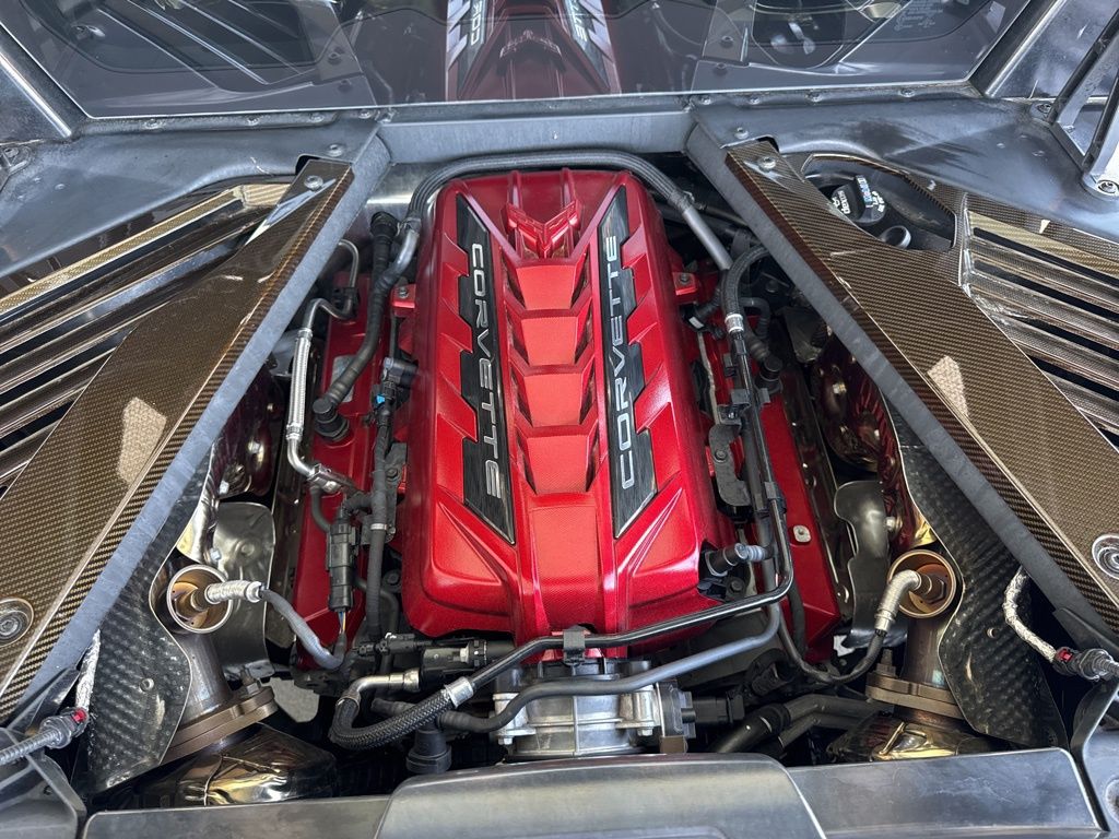 ENGINE APPEARANCE PACKAGE includes Carbon Fiber trim and lighting, BATTERY PROTECTION PACKAGE , SPOILER, REAR, Z51, SEATS, GT2 BUCKET (STD), SEAT BELT COLOR, BLACK (STD), REAR AXLE, PERFORMANCE RATIO, PERFORMANCE TRACTION MANAGEMENT, MIRRORS, OUTSIDE, CARBON FLASH METALLIC-PAINTED, LPO, CUSTOM SPLASH GUARDS, BLACK Genuine Corvette Accessory, LPO, COMPOSITE ROCKERS, BLACK Genuine Corvette Accessory, LPO, BLACK LUG NUTS Genuine Corvette Accessory, JET BLACK, NAPA LEATHER SEATING SURFACES WITH PERFORATED INSERTS, FRONT LIFT ADJUSTABLE HEIGHT WITH MEMORY, EXHAUST, PERFORMANCE 5 hp and torque increase, aggressive exhaust sound varies with driver mode selected, with stainless-steel tips, ENGINE, 6.2L V8 DI, HIGH-OUTPUT Variable Valve Timing (VVT), Active Fuel Management (AFM) (490 hp [365.4 kW] @ 6450 rpm, 465 lb-ft of torque [627.8 N-m] @ 5150 rpm) (STD).