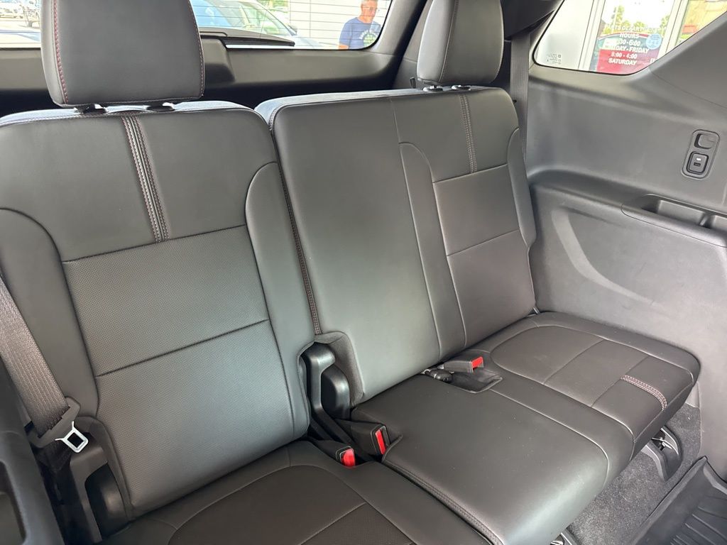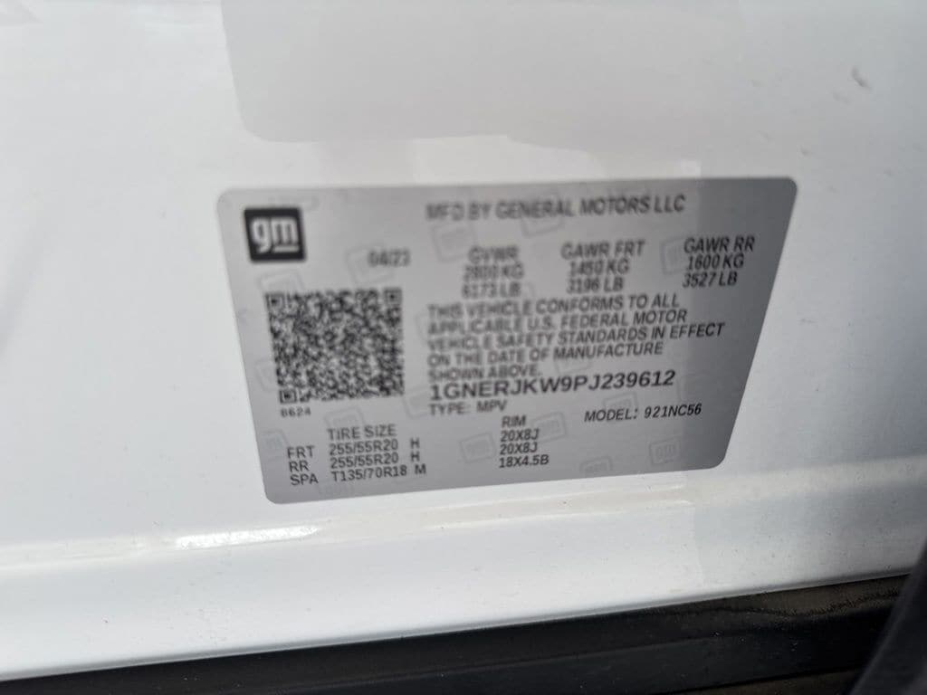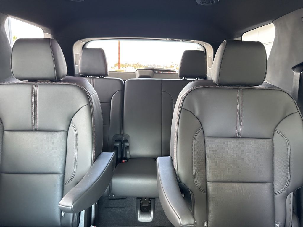 Wipers, front intermittent with washers, Wiper, rear intermittent with washer, Windows, power with driver Express Up/Down and front passenger Express-Down, Wi-Fi Hotspot capable (Terms and limitations apply. See onstar.com or dealer for details.), Wheel, spare, 18" (45.7 cm) steel, Visors, driver and passenger illuminated vanity mirrors, covered, Vehicle health management, USB ports 2 first row, 2 second row, 2 third row, Universal Home Remote includes garage door opener, programmable, Umbrella holders, driver and front passenger doors, Transmission, 9-speed automatic, Tool kit, road emergency, Tires, P255/55R20 all-season blackwall, Tire, compact spare, T135/70R18, blackwall, Tire Pressure Monitor, includes Tire Fill Alert (Does not monitor spare.), Theft-deterrent system, electrical, unauthorized entry, Teen Driver a configurable feature that lets you activate customizable vehicle settings associated with a key fob, to help encourage safe driving behavior. It can limit certain available vehicle features, and it prevents certain safety systems from being turned off. It includes the Buckle-to-Drive feature which prevents the driver from shifting from Park for up to 20 seconds if the driver's seat belt is not buckled. An in-vehicle report card gives you information on driving habits and helps you to continue to coach your new driver, Taillamps, LED, Suspension, Ride and Handling, Steering, power.