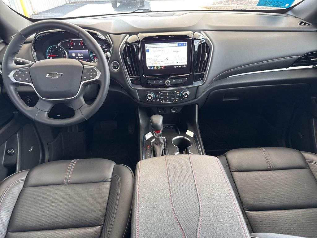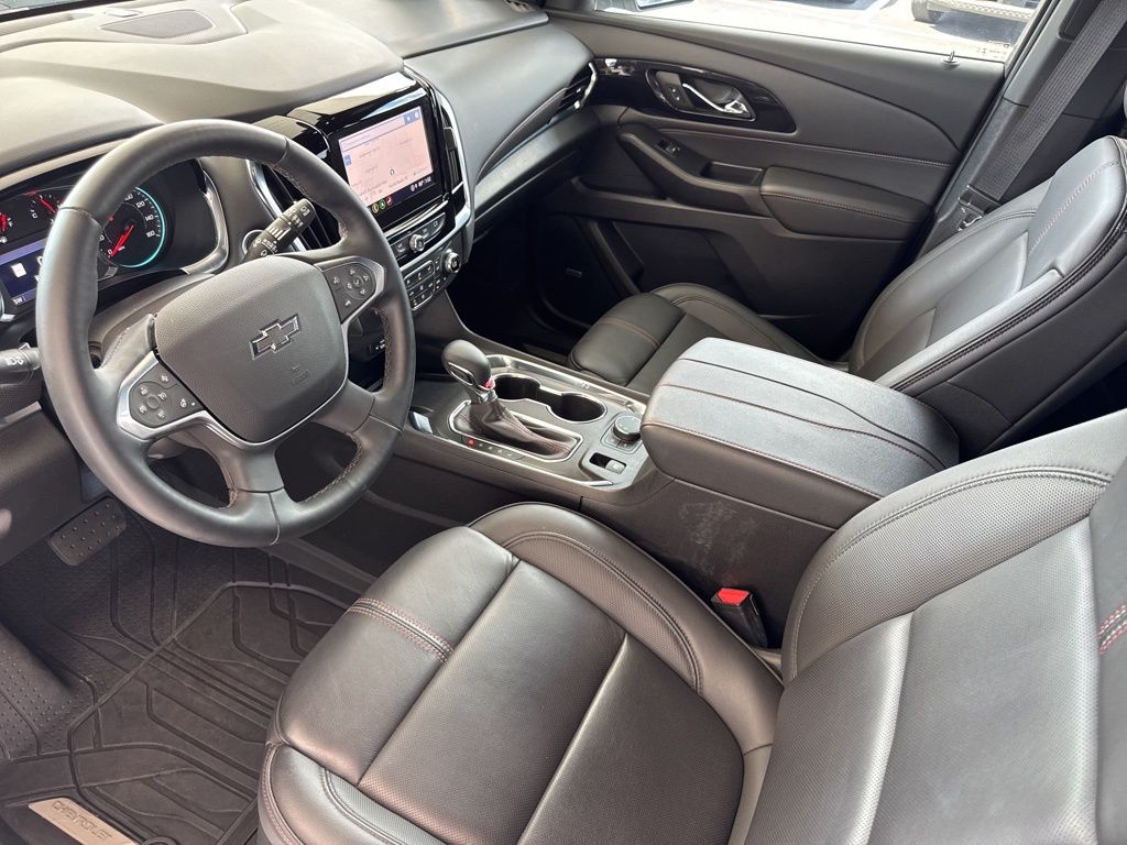 TRANSMISSION, 9-SPEED AUTOMATIC (STD), SUMMIT WHITE, SEATS, FRONT BUCKET (STD), LICENSE PLATE FRONT MOUNTING PACKAGE (will be forced on orders with ship-to states that require a front license plate), HITCH GUIDANCE, TRAILERING ASSIST GUIDELINE, HITCH GUIDANCE WITH HITCH VIEW, ENGINE, 3.6L V6, SIDI, VVT (310 hp [232.0 kW] @ 6800 rpm, 266 lb-ft of torque [361 N-m] @ 2800 rpm) (STD), COOLING SYSTEM, HEAVY-DUTY, AUDIO SYSTEM, CHEVROLET INFOTAINMENT 3 PLUS SYSTEM with connected Navigation, 8" diagonal HD color touchscreen, AM/FM stereo, Bluetooth audio streaming for 2 active devices, Apple CarPlay and Android Auto capable, enhanced voice recognition, in-vehicle apps, cloud connected personalization for select infotainment and vehicle settings. Subscription required for enhanced and connected services after trial period (STD), Wireless Phone Charging. This Chevrolet Traverse has a strong Gas V6 3.6L/217 engine powering this Automatic transmission.