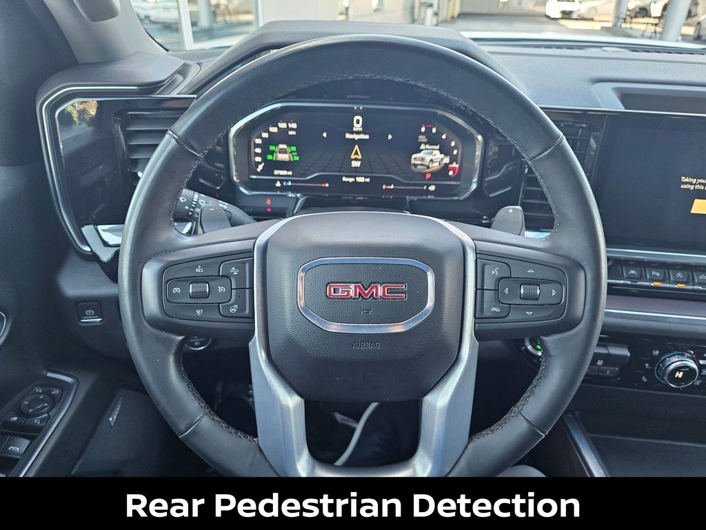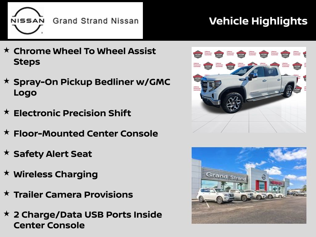 SLT PREMIUM PLUS PACKAGE includes (PCY) SLT Convenience Package, (PDY) SLT Preferred Package, (PED) Sierra Safety Plus Package, (ZL6) ProGrade Trailering system, (NZD) 20" Polished aluminum wheels, (BVT) Chrome assist steps and (CGN) spray-on bedliner., SLT PREFERRED PACKAGE Includes (KSG) Adaptive Cruise Control, (A48) rear sliding power window, (UG1) Universal Home Remote and (KA6) heated second row outboard seats, SLT CONVENIENCE PACKAGE includes (A50) bucket seats with (D07) center console, (KQV) ventilated front seats, (K4C) Wireless Charging, (UQA) Bose Premium Audio System, (N38) Power Rake/ Telescoping steering column and (UBC) USB ports, 2 (first row) Charge and Data ports located inside armrest, SIERRA SAFETY PLUS PACKAGE includes (UD5) Front and Rear Park Assist, (UFB) Rear Cross Traffic Braking, (UKK) Rear Pedestrian Alert, (TRG) Trailer Camera Provisions, (UKV) Trailer Side Blind Zone Alert and (UV2) HD Surround Vision (Includes (HS1) Safety Alert Seat. , SUMMIT WHITE, STEERING COLUMN, POWER RAKE AND TELESCOPING, STEERING COLUMN LOCK, ELECTRICAL (Beginning with start of production through July 31, 2023, vehicles will be forced to include (R7N) Not Equipped with Steering Column Lock, which removes Steering Column Lock. See dealer for details. Vehicles built on or after July 31, 2023 will include (N06) Steering Column Lock.), SLT PREFERRED EQUIPMENT GROUP includes standard equipment, SEATS, VENTILATED DRIVER AND FRONT PASSENGER, SEATS, HEATED SECOND ROW OUTBOARD SEATS, SEATS, FRONT BUCKET with center console, SAFETY ALERT SEAT, REAR PEDESTRIAN ALERT, REAR CROSS TRAFFIC BRAKING, REAR AXLE, 3.23 RATIO, PROGRADE TRAILERING SYSTEM includes (PZ8) Hitch View, (JL1) trailer brake controller and (UET) In-Vehicle Trailering App, LPO, ALL-WEATHER FLOOR LINER, 1ST AND 2ND ROWS (dealer-installed), LICENSE PLATE KIT, FRONT, JET BLACK, PERFORATED LEATHER-APPOINTED FRONT OUTBOARD SEAT TRIM, IN-VEHICLE TRAILERING APP System, includes checklist, trailer maintenance reminders, trailer security alerts, trailer mileage, tow/haul reminder, trailer electrical diagnostics and Trailer Tire Pressure Monitor System module.
