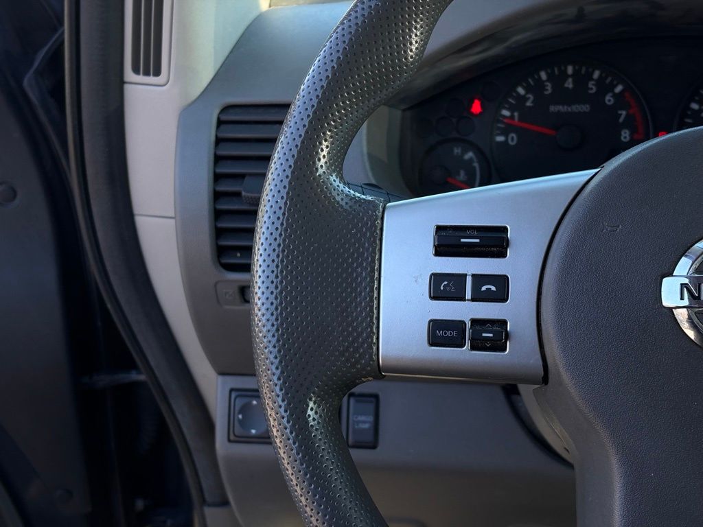 STEEL, CLOTH SEAT TRIM, NIGHT ARMOR, [K02] SV VALUE TRUCK PACKAGE -inc: Heated Front Seats, Dual Zone Automatic Temperature Control, Rear View Monitor w/Rear Sonar System, Utili-Track Channel System, 4 adjustable tie-down cleats, Sliding Bed Extender, Auto-Dimming Inside Mirror w/Integrated Compass, outside temperature display, Factory-Applied Spray-On Bedliner, In-Cabin Microfilter, Floor Mats, Class IV Integrated Receiver Hitch, Vehicle Security System (VSS), Fog Lights, Wheels: 16" Alloy, Wheels w/Silver Accents, Variable Intermittent Wipers, Urethane Gear Shifter Material, Transmission: 5-Speed Automatic w/OD, Transmission w/Oil Cooler, Tires: P265/70R16 OWL. This Nissan Frontier has a strong Regular Unleaded V-6 4.0 L/241 engine powering this Automatic transmission.