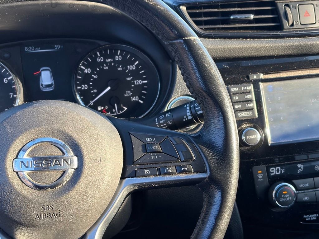 GUN METALLIC, CHARCOAL, CLOTH SEAT TRIM, [Z66] ACTIVATION DISCLAIMER, [U01] SV PREMIUM PACKAGE -inc: safety shield technologies and moving object detection, Motion Activated Liftgate, Around View Monitor, Heated Leather Steering Wheel, Radio: AM/FM/CD/AUX NissanConnect w/Navigation, mobile apps, Nissan navigation w/voice guidance, 7" color touch-screen display, Nissan voice recognition for navigation and audio, SiriusXM Traffic, SiriusXM Travel Link (weather, fuel prices, movie listings, stock info and sports) and Siri Eyes Free, [L92] FLOOR MATS & 2-PC CARGO AREA PROTECTOR -inc: 2-pc front and 2-pc 2nd row floor mats, [K02] SUN & SOUND TOURING PACKAGE -inc: Bose Audio, 3 speakers (9 total), Power Panoramic Moonroof, [B94] ROOF RAIL CROSS BARS, Wireless Phone Connectivity, Wheels: 17" Aluminum Alloy, Wheels w/Silver Accents. This Nissan Rogue has a dependable Regular Unleaded I-4 2.5 L/152 engine powering this Variable transmission.