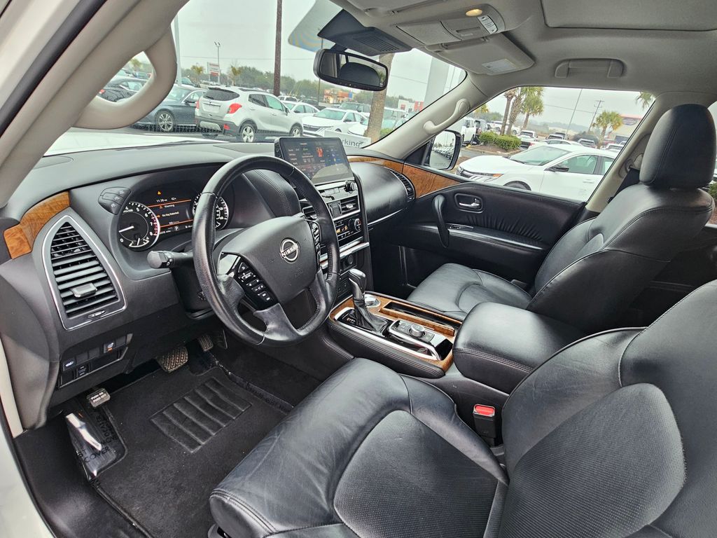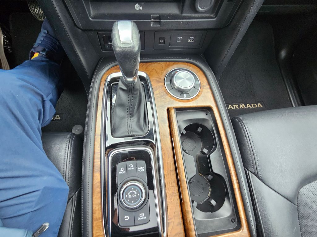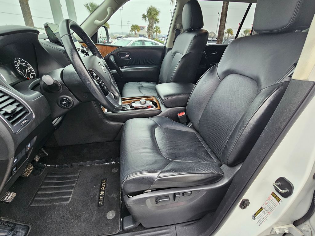 This Nissan Armada has a strong Regular Unleaded V-8 5.6 L/339 engine powering this Automatic transmission. BLACK, LEATHER-APPOINTED SEAT TRIM, ASPEN WHITE TRICOAT PEARL, [X01] CAPTAIN'S CHAIRS PACKAGE -inc: Seating revised from 8 to 7 passengers, 2nd Row Captain's Chairs, 2nd Row Center Console w/Padded Armrest. Carfax One-Owner. 11 Carfax Service Records.