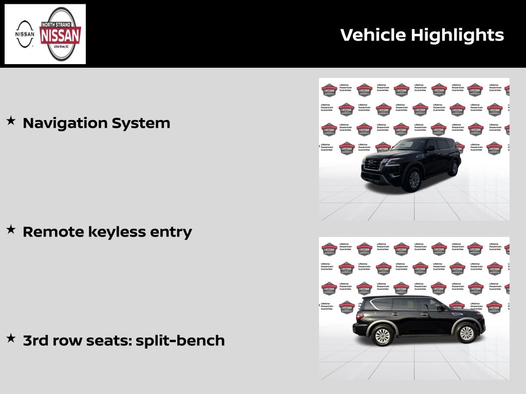 As a Nissan Certified pre-owned vehicle, this Armada S comes with a comprehensive 167-point inspection, a transferable warranty, and a Carfax vehicle history report. You can drive with confidence, knowing that this SUV has been meticulously maintained and backed by Nissan's commitment to quality.