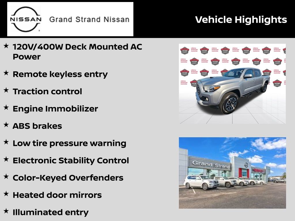Wireless Phone Connectivity, Wi-Fi Connect with up to 2GB within 3-month trial Mobile Hotspot Internet Access, Variable Intermittent Wipers, Vanity w/Driver And Passenger Auxiliary Mirror, Trailer Wiring Harness, Toyota Safety Sense P (TSS-P), Tailgate Rear Cargo Access, Steel Spare Wheel, Solid Axle Rear Suspension w/Leaf Springs, Smart Device Integration. This Toyota Tacoma 4WD has a strong Regular Unleaded V-6 3.5 L/211 engine powering this 6-Speed transmission.